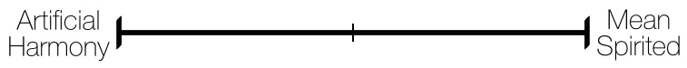...teaches us that either extreme is unhealthy. The healthiest place is just left of center. While operating in a "mean-spirited" environment might be more obviously unhealthy, "artificial harmony" is equally so. In those environments, the difficult conversations never seem to happen. There is little resolution to problems. Employees and divisions get silo'd, everyone operates in a vacuum, unhealthy offline conversations prevail, the company spirals without clear leadership and addressing of important issues, and... bullies emerge.